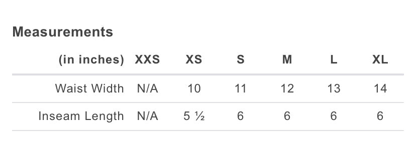- 1 1/2" Covered waistband with 6" inseam